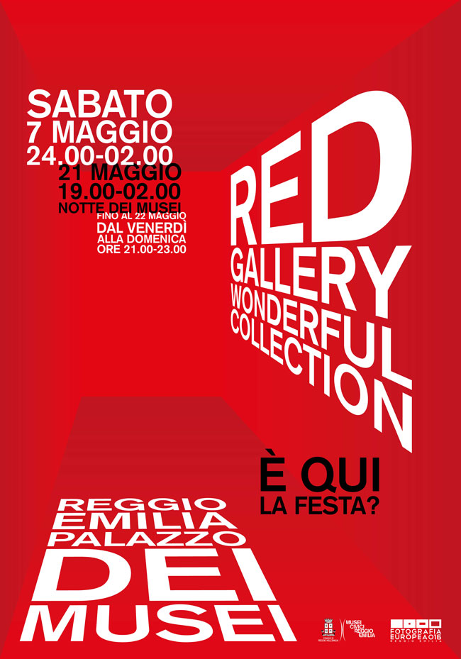 In occasione delle giornate inaugurali di Fotografia Europea 2016 sabato 7 maggio dalle ore 24.00 alle 2.00 l’ultimo piano di Palazzo dei Musei si anima con l’installazione Red Gallery / Wonderful collection.