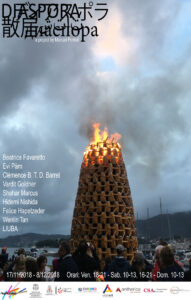 Il titolo, DIASPORA, riprendeva l’elemento del viaggio, dell’andare, che nella nostra epoca accade per i motivi più complessi. Le diverse nazionalità ed esperienze estere degli artisti confluivano in questa installazione, che sviscerava in maniera totale e coinvolgente la tematica del viaggio, e quindi dell’abbandono, della guerra, dell’addio, dell’ignoto, dell’altro.