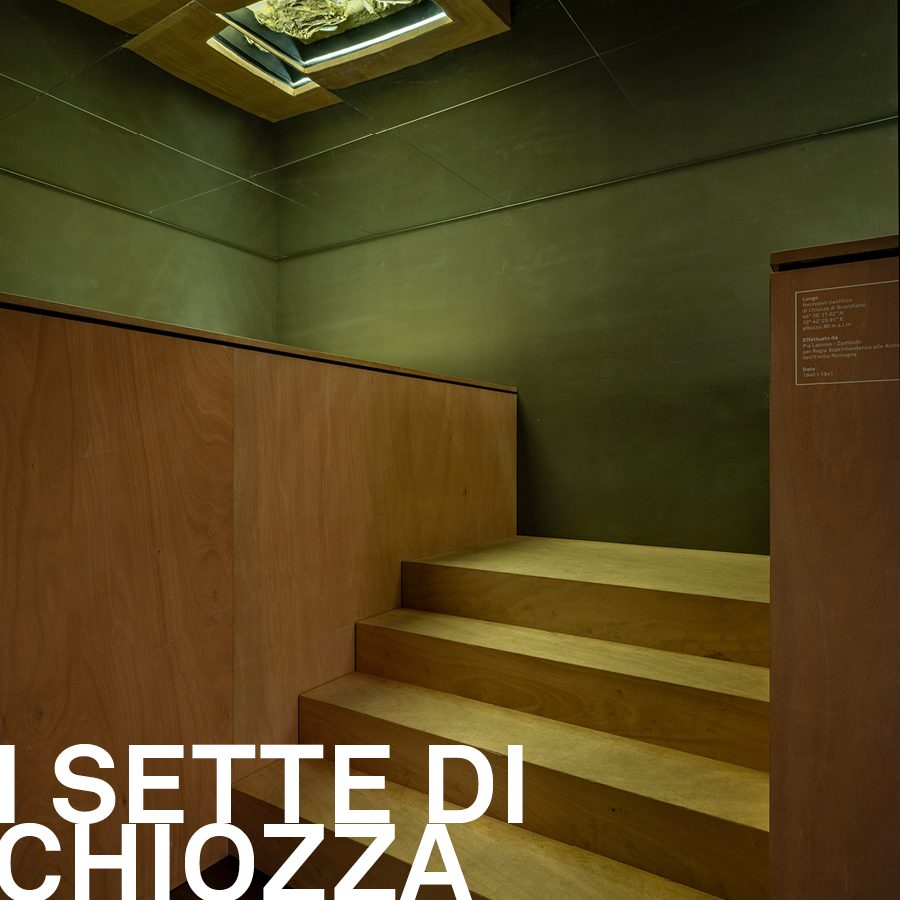 Nell’estate del 1941, a Chiozza di Scandiano furono scoperti 19 scheletri risalenti a circa 6500 anni fa, appartenenti a una delle più grandi necropoli neolitiche dell’Italia settentrionale. Gli individui selezionati presentano corredi funerari particolarmente interessanti, deposti nelle tombe per accompagnare i defunti nell’ultimo viaggio. Attraverso un soffitto a specchio, è possibile intravedere i corpi. Un gesto simbolico di cura per i sette di Chiozza, un diaframma tra il mondo dei vivi e quello dei morti che permette, a chi guarda, di farlo con rispetto. In basso è visibile una sepoltura per rendere a tutti accessibile questo antico segreto.