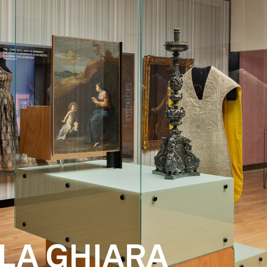 Completa il discorso sulla Basilica della Ghiara un’altra grande vetrina che accoglie alcuni esempi dei preziosi paramenti liturgici provenienti dal patrimonio della Basilica della Ghiara ai quali fa da sfondo il bozzetto preparatorio della pala che la contessa Camilla Brami commissionò a Palma il Giovane per la sua cappella in Duomo. Grande mecenate, amante delle arti e fervente devota, la contessa Brami fu titolare di un importante altare in Ghiara ornato da una bellissima pala di Leonello Spada, oggi presso la Galleria Estense.